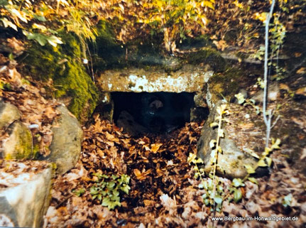 Ganz anders stellt sich die Situation bei einem Stollen dar, der unweit der zuvor beschriebenen Schadstelle liegt. Auch hier bleiben Grubenname, Betreiber und Entstehungszeit im Dunkel der Geschichte verborgen – es existieren keinerlei verwertbare Überlieferungen zu diesem Bergwerk. Vom Mundloch aus ist der Stollen auf einer Länge von etwa 16 Metern mit gesetzten Granitsteinen und Deckensteinen ausgebaut. Dahinter ist der Verlauf heute leider verbrochen. In den Jahren 1982 und 2003 waren Befahrungen jedoch noch möglich, sodass eine Vermessung durchgeführt werden konnte. Das Bergwerk, bestehend aus einer Hauptstrecke und vier Seitenstrecken, wies eine Streckenhöhe von rund einem Meter und eine Breite zwischen 80 Zentimeter bis 1,20 Meter auf. Die Gesamtlänge wurde mit etwa 93 Metern dokumentiert. Ein Abschnitt endete an einem Verbruch, hinter dem ein deutlicher Wetterzug spürbar war. Die befahrbaren Strecken waren in verwittertem Granodiorit ohne sichtbare Erzführung aufgefahren – somit bleibt auch hier das ursprüngliche Abbauziel weiterhin ein ungelöstes Rätsel. Das Mundloch dieses Stollens wurde von unseren Vereinsmitgliedern wieder in seiner ursprünglichen Tiefe freigelegt und von dem im Stollen hinterlassenen Müll vollständig beräumt. Besonderer Dank gilt hierbei Frank Heinzel für sein herausragendes Engagement. Zudem wurde durch den Bergbau-Traditionsverein Hohwald e.V. eine abschließbare Gittertür eingebaut, die gleichzeitig den Fledermäusen den Zugang zum Stollen ermöglicht.