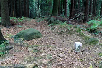 Wer entlang der deutsch-tschechischen Grenze vom Schwarzbachtal in Richtung Buchberg wandert, wird Grenzmarkierungen finden, welche aus verschiedenen Jahrhunderten stammen. Neben den aktuellen Grenzsteinen mit den Initialen “D“ und “C“ finden sich auch noch Grenzmarkierungen aus längst vergangenen Zeiten. Als Beispiel sei hier ein Granitblock am Buchberg genannt. Auf diesem findet man neben dem Grenzkreuz und der Nummerierung “248“ mit dem Landesherrlichen “K“ auch noch die Initialen “16 H“. Laut Aussage des Heimatfreundes E.D. Lenz aus Putzkau handelt es sich bei “16 H“ um eine böhmische Grenzsteinnummerierung. Viele „neue“ Grenzmarkierungen wurden oftmals einfach über die vorhandenen Zeichen geschlagen bis diese fast völlig verschwunden waren. Ebenso wurden Grenzsteine auf die alten Granitblöcke aufgesetzt und damit die alten Markierungen verdeckt. Wer jedoch genau hinsieht, wird noch viele Reste von historischen Grenzmarkierungen entdecken. Auch kann man noch vereinzelt Grenzsteine im Hohwald finden, welche die Initialen “D“ für Deutschland und “S“ für Sachsen untereinander tragen. Diese Steine waren die Vorgänger der Grenzsteine mit der Inschrift “DDR“.