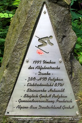Dieser Stein steht am Unteren Horizontalweg unterhalb des Valtenberges. Er wurde am mittlerweile stillgelegten Skilift der Abfahrtsstrecke Neukirch aufgestellt. Mit dem Bau dieser Strecke und des Liftes wurde in den 1980er Jahren durch eine Bürgerinitiative begonnen. 1986 brachte dann der fertiggestellte Lift die ersten Abfahrtsläufer auf den Startpunkt der Abfahrtsstrecke am Valtenberg. Die Strecke galt mit seinen etwa 600 Meter Länge als eine der längsten und steilsten in der Region. Seit der Lift im Jahre 2012 beschädigt wurde, ruht hier der Liftbetrieb. Eine Reparatur der mit über 30 Jahren Dienstzeit veralteten Technik rechnet sich nicht mehr. Es gibt jedoch seit einigen Jahren Überlegungen zum Neubau eines Sesselliftes zum Gipfel des Valtenberges. Dieser könnte dann ganzjährig Gäste auf den Berg befördern.